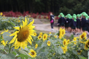 たくさんのひまわりと、みんなより背丈の大きなひまわりを見て歓声が上がっていました。